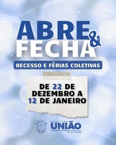 O Serviço público estará de recesso e férias coletivas do dia 22 de dezembro ao dia 12 de janeiro A Prefeitura de União da